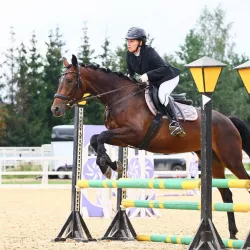 Кобыла 2019 года рождения, 145 см. в холке. Пони класс. Молодая перспективная пони. Обладает отличным прыжком и уже принимала участие в соревнованиях по конкуру. Очень чуткая ко всаднику. Находится в…