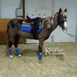 Очень изящная, высокая и красивая кобыла. Привезена в Россию в 2023 году и на сегодняшний день выступает в соревнованиях по конкуру с высотой до 140 см. Династия очень аккуратная и смелая лошадь с прекрасной…