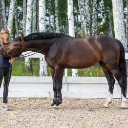 Очень изящная, высокая и красивая кобыла. Привезена в Россию в 2023 году и на сегодняшний день выступает в соревнованиях по конкуру с высотой до 140 см. Династия очень аккуратная и смелая лошадь с прекрасной…