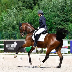 Очень изящная, высокая и красивая кобыла. Привезена в Россию в 2023 году и на сегодняшний день выступает в соревнованиях по конкуру с высотой до 140 см. Династия очень аккуратная и смелая лошадь с прекрасной…