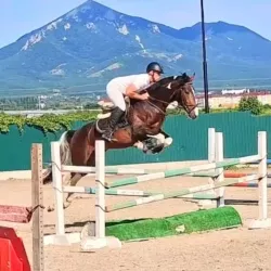 Очень изящная, высокая и красивая кобыла. Привезена в Россию в 2023 году и на сегодняшний день выступает в соревнованиях по конкуру с высотой до 140 см. Династия очень аккуратная и смелая лошадь с прекрасной…