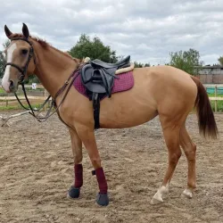 Жеребец 2021гр. Помесь. Рост 154+ см в холке. Заезжен, очень мягкий и удобный под седлом. Можно делать зарядку, на корде заниматься вольтмжировкой, скакать по кругу галопом с брошенным поводом. На лошади…