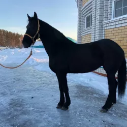 Кобыла 2018 г.р Рост ~160 см. Орлово Фризская помесь, рост родителей 168 и 166 см. Спокойная, социальная, на хороших движениях, спокойно можно посадить ребёнка на спину с заездкой в дальнейшем проблем…