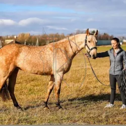 №1366 — Кобыла, 2019 г.р., 164 в/х, светло буланой масти. ❄️ Ахалтекинской породы. ❄️ Не заезжена, но была в подготовке (надевали седло, седелку, знает уздечку, принимает вес всадника). Абсолютно здорова,…