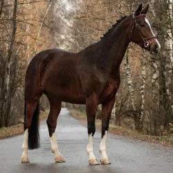 Кобыла ганноверской помеси. В родословной: Grandwilli/Grafenstein (давший отличное потомство как и в конкур, так и в выездку), Валерик, Ульцбург, Вандал. Мама голштинка, не оформлена во ВНИИК 2023 года…