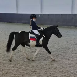 Очень изящная, высокая и красивая кобыла. Привезена в Россию в 2023 году и на сегодняшний день выступает в соревнованиях по конкуру с высотой до 140 см. Династия очень аккуратная и смелая лошадь с прекрасной…