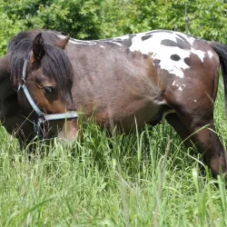 Жеребец.Полукровный пони.85 см в холке.2022 года рождения.Отец аппалуза пони; Мать Лаванда, шетлендский пони.Ориентирован на человека.Гуляет, приучен давать ноги, ходить и бегать рядом с человеком.Имеются…