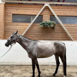 Очень изящная, высокая и красивая кобыла. Привезена в Россию в 2023 году и на сегодняшний день выступает в соревнованиях по конкуру с высотой до 140 см. Династия очень аккуратная и смелая лошадь с прекрасной…