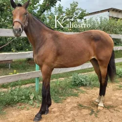 Очень изящная, высокая и красивая кобыла. Привезена в Россию в 2023 году и на сегодняшний день выступает в соревнованиях по конкуру с высотой до 140 см. Династия очень аккуратная и смелая лошадь с прекрасной…