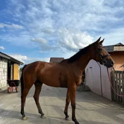 Кобыла.Полукровной спортивной породы.157 см в холке.2021 года рождения.Отец Lord Loxley; Мать Фраза.Обладает идеальным характером.Проходит тренинг согласно возрасту, много гуляет.Все манипуляции без…