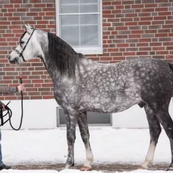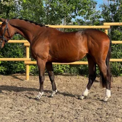 Очень изящная, высокая и красивая кобыла. Привезена в Россию в 2023 году и на сегодняшний день выступает в соревнованиях по конкуру с высотой до 140 см. Династия очень аккуратная и смелая лошадь с прекрасной…