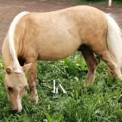 Жеребец.Полукровный пони.85 см в холке.2022 года рождения.Отец аппалуза пони; Мать Лаванда, шетлендский пони.Ориентирован на человека.Гуляет, приучен давать ноги, ходить и бегать рядом с человеком.Имеются…