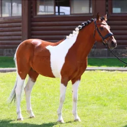 Очень изящная, высокая и красивая кобыла. Привезена в Россию в 2023 году и на сегодняшний день выступает в соревнованиях по конкуру с высотой до 140 см. Династия очень аккуратная и смелая лошадь с прекрасной…