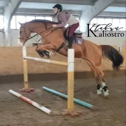 Очень изящная, высокая и красивая кобыла. Привезена в Россию в 2023 году и на сегодняшний день выступает в соревнованиях по конкуру с высотой до 140 см. Династия очень аккуратная и смелая лошадь с прекрасной…