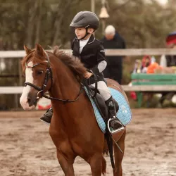 Очень изящная, высокая и красивая кобыла. Привезена в Россию в 2023 году и на сегодняшний день выступает в соревнованиях по конкуру с высотой до 140 см. Династия очень аккуратная и смелая лошадь с прекрасной…