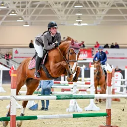 Очень изящная, высокая и красивая кобыла. Привезена в Россию в 2023 году и на сегодняшний день выступает в соревнованиях по конкуру с высотой до 140 см. Династия очень аккуратная и смелая лошадь с прекрасной…