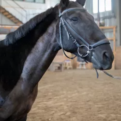 Очень изящная, высокая и красивая кобыла. Привезена в Россию в 2023 году и на сегодняшний день выступает в соревнованиях по конкуру с высотой до 140 см. Династия очень аккуратная и смелая лошадь с прекрасной…