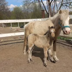 Кобыла. 84 см в холке. 2021 года рождения. Отец - Реванш (Мини Аппалуза); Мать - Запонка (3/4 АМХА). очень добрая и общительная. Спокойная. Находится в Красноярске.