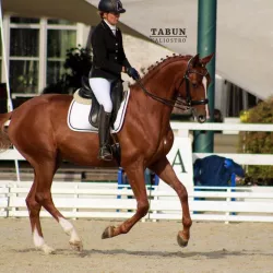 Кобыла 2018 года рождения,168 см. в холке.Тракено голштинской породы, по маме родственница Кальваро Z. Кобыла поздняя. Была заезжена, затем родила жеребёнка, и только после отъема начала работаться…