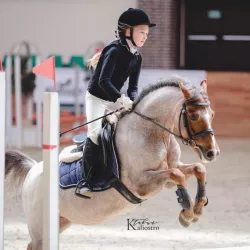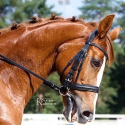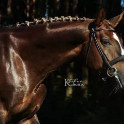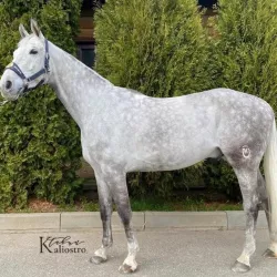 Очень изящная, высокая и красивая кобыла. Привезена в Россию в 2023 году  и на сегодняшний день выступает в соревнованиях по конкуру с высотой до 140 см. Династия  очень аккуратная и смелая лошадь с прекрасной…