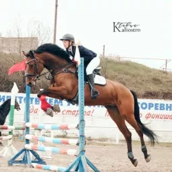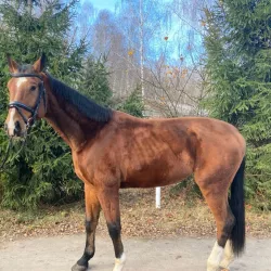 Очень изящная, высокая и красивая кобыла. Привезена в Россию в 2023 году и на сегодняшний день выступает в соревнованиях по конкуру с высотой до 140 см. Династия очень аккуратная и смелая лошадь с прекрасной…