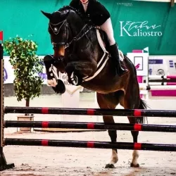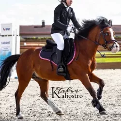 Очень изящная, высокая и красивая кобыла. Привезена в Россию в 2023 году и на сегодняшний день выступает в соревнованиях по конкуру с высотой до 140 см. Династия очень аккуратная и смелая лошадь с прекрасной…
