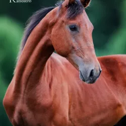 Очень изящная, высокая и красивая кобыла. Привезена в Россию в 2023 году  и на сегодняшний день выступает в соревнованиях по конкуру с высотой до 140 см. Династия  очень аккуратная и смелая лошадь с прекрасной…