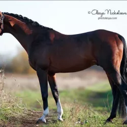 Очень изящная, высокая и красивая кобыла. Привезена в Россию в 2023 году и на сегодняшний день выступает в соревнованиях по конкуру с высотой до 140 см. Династия очень аккуратная и смелая лошадь с прекрасной…