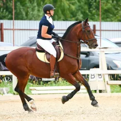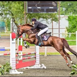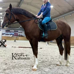 Очень изящная, высокая и красивая кобыла. Привезена в Россию в 2023 году и на сегодняшний день выступает в соревнованиях по конкуру с высотой до 140 см. Династия очень аккуратная и смелая лошадь с прекрасной…