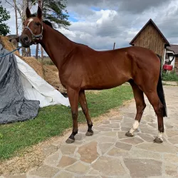 Очень изящная, высокая и красивая кобыла. Привезена в Россию в 2023 году и на сегодняшний день выступает в соревнованиях по конкуру с высотой до 140 см. Династия очень аккуратная и смелая лошадь с прекрасной…