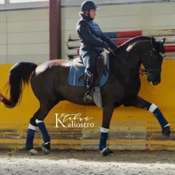 Очень изящная, высокая и красивая кобыла. Привезена в Россию в 2023 году и на сегодняшний день выступает в соревнованиях по конкуру с высотой до 140 см. Династия очень аккуратная и смелая лошадь с прекрасной…