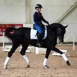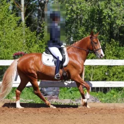 Очень изящная, высокая и красивая кобыла. Привезена в Россию в 2023 году  и на сегодняшний день выступает в соревнованиях по конкуру с высотой до 140 см. Династия  очень аккуратная и смелая лошадь с прекрасной…