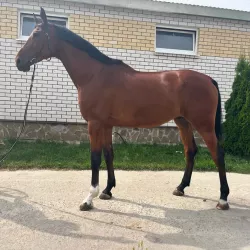 Мерин. Ганноверской породы.180 см в холке.2013 года рождения.Отец Korsazas; Мать California.Добрый, приветливый, гибкий. Хорошо выезжен, знает уступки, плечо, траверс, одиночные менки.Связки до 100…