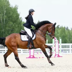 Очень изящная, высокая и красивая кобыла. Привезена в Россию в 2023 году и на сегодняшний день выступает в соревнованиях по конкуру с высотой до 140 см. Династия очень аккуратная и смелая лошадь с прекрасной…