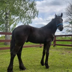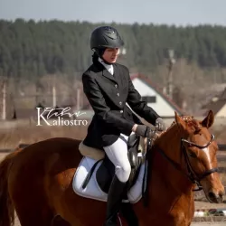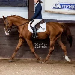 Очень изящная, высокая и красивая кобыла. Привезена в Россию в 2023 году и на сегодняшний день выступает в соревнованиях по конкуру с высотой до 140 см. Династия очень аккуратная и смелая лошадь с прекрасной…