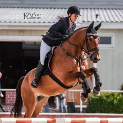 Очень изящная, высокая и красивая кобыла. Привезена в Россию в 2023 году и на сегодняшний день выступает в соревнованиях по конкуру с высотой до 140 см. Династия очень аккуратная и смелая лошадь с прекрасной…