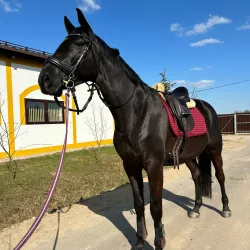 Мерин.Тракено буденновской помеси.Вороной масти.168 169 см в холке. 2015 года рождения.Отец Ионизатор; Мать Патриотка; Дедушка Изюм (чемпион СССР по конкуру).Очень честный, душевный конь, бронебойная…