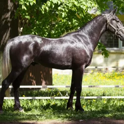 Очень изящная, высокая и красивая кобыла. Привезена в Россию в 2023 году и на сегодняшний день выступает в соревнованиях по конкуру с высотой до 140 см. Династия очень аккуратная и смелая лошадь с прекрасной…