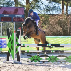 Очень изящная, высокая и красивая кобыла. Привезена в Россию в 2023 году и на сегодняшний день выступает в соревнованиях по конкуру с высотой до 140 см. Династия очень аккуратная и смелая лошадь с прекрасной…
