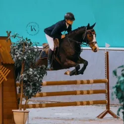 Очень изящная, высокая и красивая кобыла. Привезена в Россию в 2023 году и на сегодняшний день выступает в соревнованиях по конкуру с высотой до 140 см. Династия очень аккуратная и смелая лошадь с прекрасной…