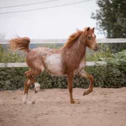 Кобыла 2021 года рождения, 143 см. в холке.Пони класс. Ласковая пони в стадии заездки. На данный момент освоила все бытовые мероприятия: чистка, ножки, пшикалки, корда. Визуально здорова. Находится в…