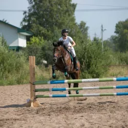 Мерин 2010 г.р. Рост 165 см. Происхождение неизвестно. Работает в учебных группах, катает даже самых юных всадников. Напрыган до 80, ходит в поля, леса. Без проблем работает на всех площадках как один,…