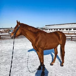 Очень изящная, высокая и красивая кобыла. Привезена в Россию в 2023 году и на сегодняшний день выступает в соревнованиях по конкуру с высотой до 140 см. Династия очень аккуратная и смелая лошадь с прекрасной…
