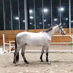 Очень изящная, высокая и красивая кобыла. Привезена в Россию в 2023 году и на сегодняшний день выступает в соревнованиях по конкуру с высотой до 140 см. Династия очень аккуратная и смелая лошадь с прекрасной…