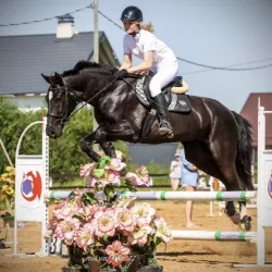 Очень изящная, высокая и красивая кобыла. Привезена в Россию в 2023 году  и на сегодняшний день выступает в соревнованиях по конкуру с высотой до 140 см. Династия  очень аккуратная и смелая лошадь с прекрасной…