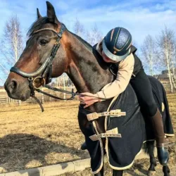 Кобыла 2016 г.р. Рост 165 см . Чистокровной верховой породы ( Майя Энтерпрайз Марзия ). Маршруты до 105,связки до 110, в упражнениях до 115 120. Есть опыт в троеборье ДК80 и ДК90, прыгает барьеры из…