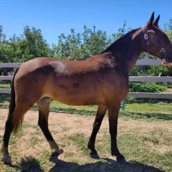 Очень изящная, высокая и красивая кобыла. Привезена в Россию в 2023 году и на сегодняшний день выступает в соревнованиях по конкуру с высотой до 140 см. Династия очень аккуратная и смелая лошадь с прекрасной…