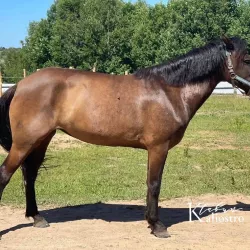 Очень изящная, высокая и красивая кобыла. Привезена в Россию в 2023 году и на сегодняшний день выступает в соревнованиях по конкуру с высотой до 140 см. Династия очень аккуратная и смелая лошадь с прекрасной…