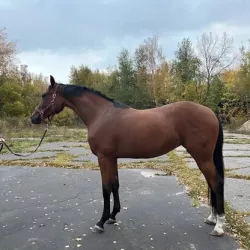 Очень изящная, высокая и красивая кобыла. Привезена в Россию в 2023 году и на сегодняшний день выступает в соревнованиях по конкуру с высотой до 140 см. Династия очень аккуратная и смелая лошадь с прекрасной…