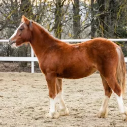 Очень изящная, высокая и красивая кобыла. Привезена в Россию в 2023 году и на сегодняшний день выступает в соревнованиях по конкуру с высотой до 140 см. Династия очень аккуратная и смелая лошадь с прекрасной…